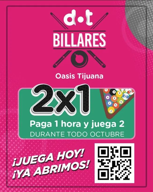 Cinedot trae para ti su nueva área de billar disponible para toda la familia, consulta sus precios en dulcería.